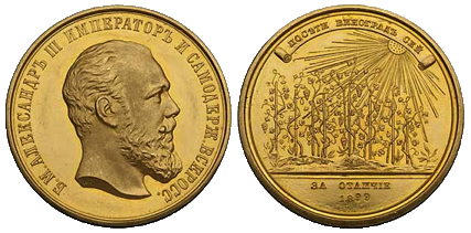 The growing vines appear on multiple medals of gold, silver and bronze issued from the reign of Catherine the Great through the reign of Alexander III[20].