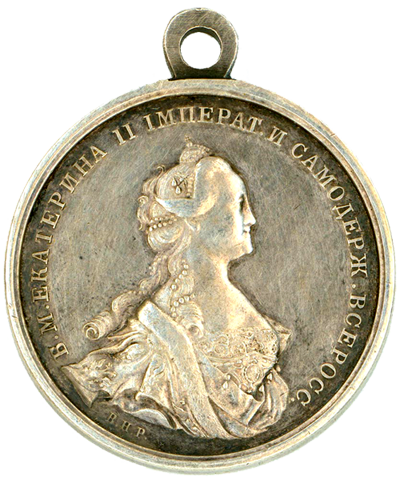 Catherine the Great was presented with five golden, two silver, and six bronze medals, while her son, Pavel Petrovich, received one of each kind.